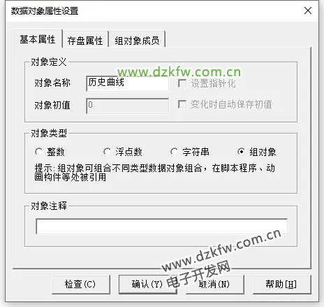 1、點擊實時數據庫新增組對象,設置對象名稱。