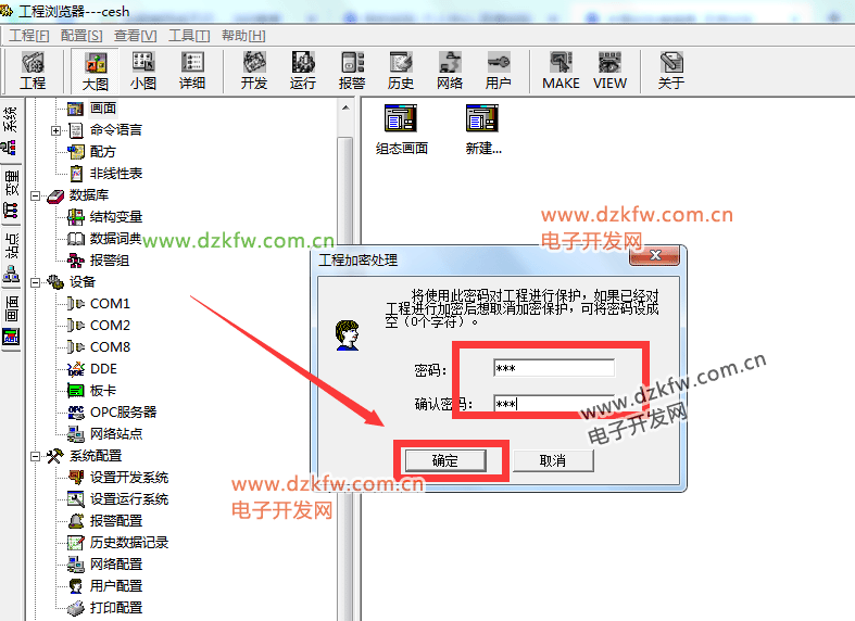 然后在彈出的工程加密處理對話框中輸入加密工程的密碼并點擊【確定】