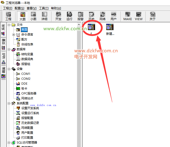 在工程瀏覽器右側(cè)用鼠標左鍵雙擊“F”圖標,進入開發(fā)系統(tǒng)對話框。