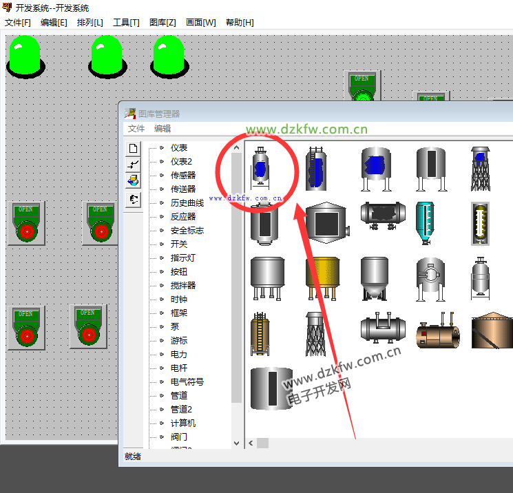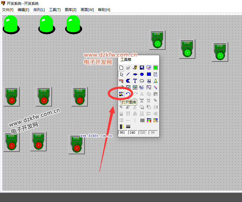 然后在開發(fā)系統(tǒng)菜單工具箱中選擇【打開圖庫】