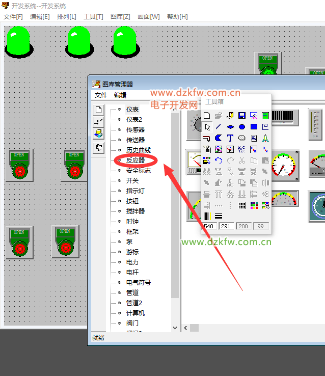 在彈出的圖庫管理器中選擇【反應(yīng)器】并點擊打開。