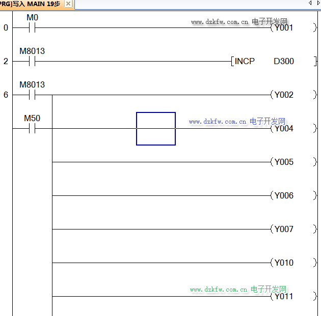 本文只介介紹FX3U-ENET-ADP+FX3GA-40MT PLC 與組態王的通信,PLC 程序如下