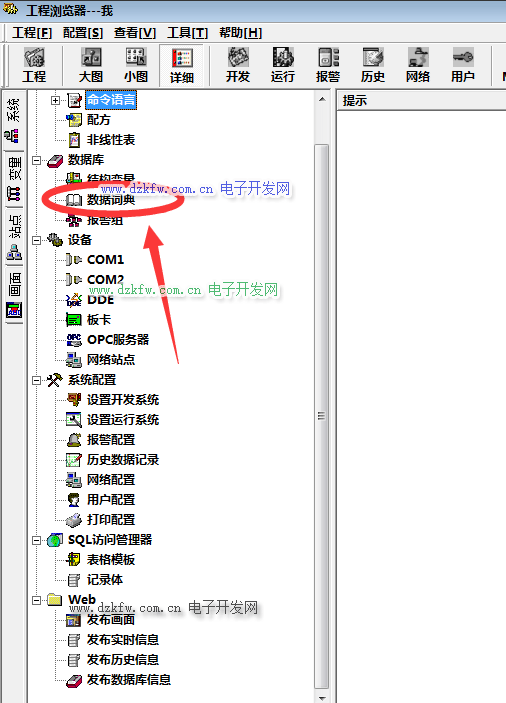 打開組態王組態軟件,在項目樹菜單欄中選擇【數據庫】并點擊打開。