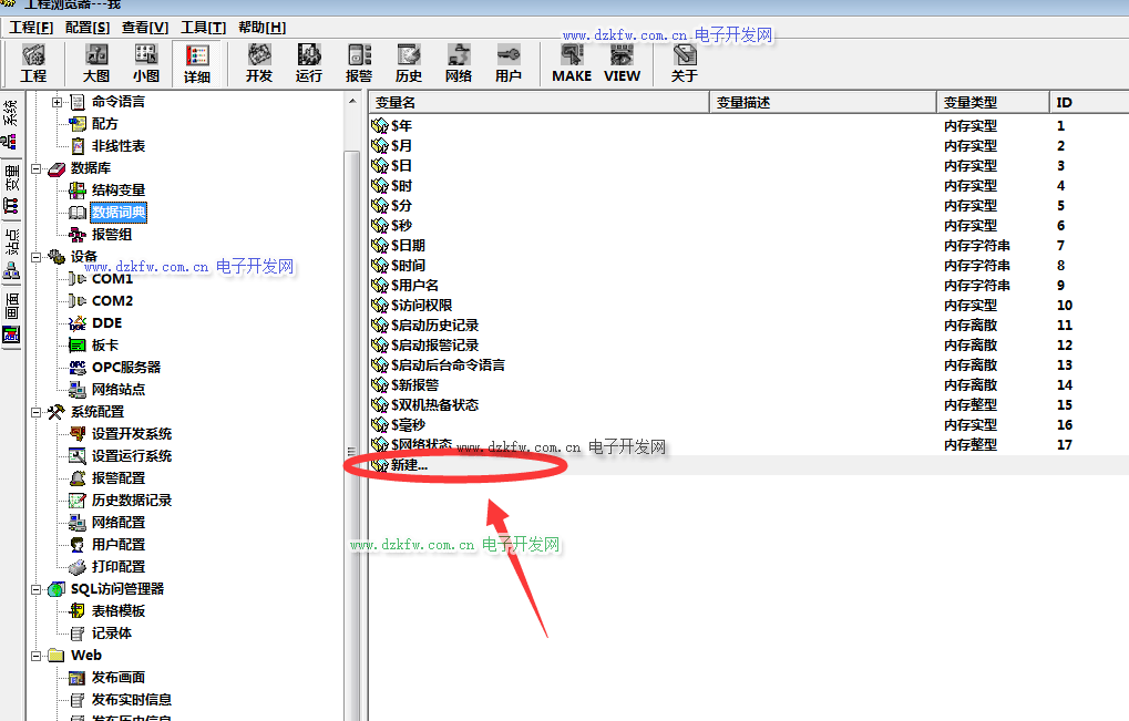 在數據詞典窗口變量名中選擇【新建...】并點擊打開