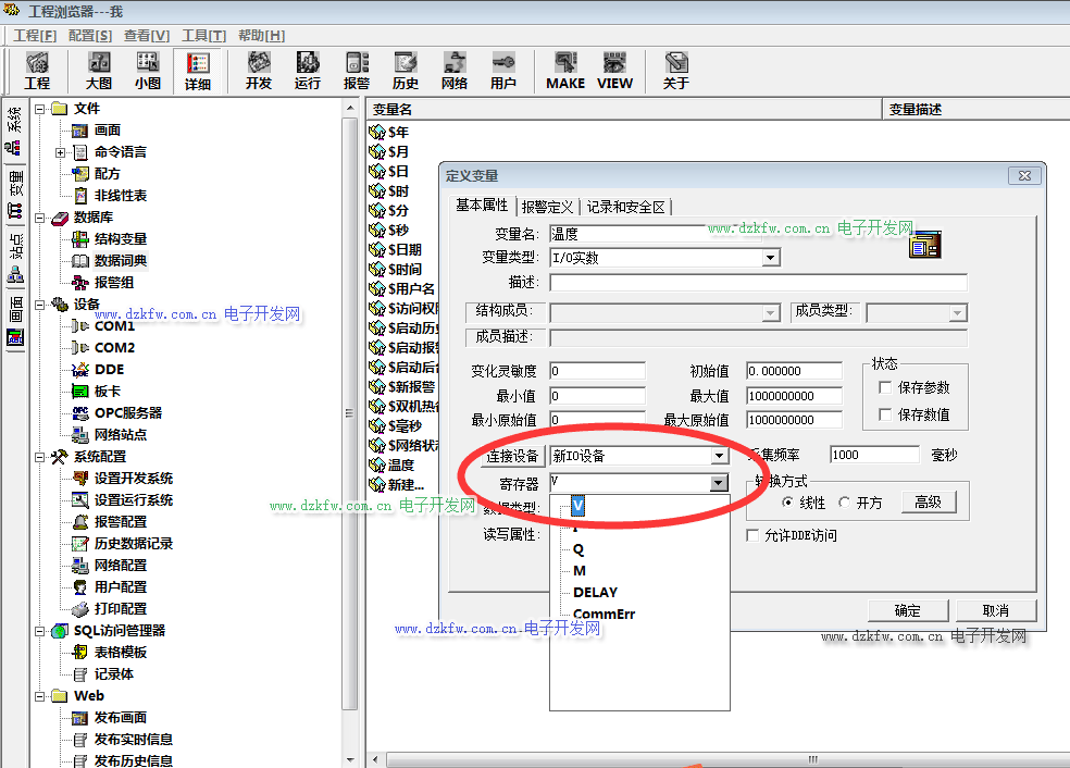 將連接設備選擇為建立連接的設備【新I0設備】,寄存器選擇 V區