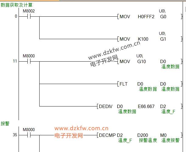 三菱PLC溫度控制系統案例,三菱PLC模擬量采集案例: