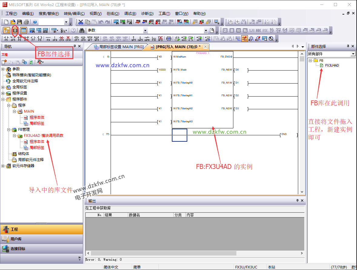 FB庫函數調用方法 (Gx Work2版本)FB功能塊調用,本文以 Gx Works2 軟件為例