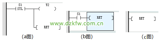 RET 指令功能:表示結束步進梯形圖程序;程序跳至主母線,繼續(xù)執(zhí)行主母線后面的非步進指令或步進指令(如果有的話);