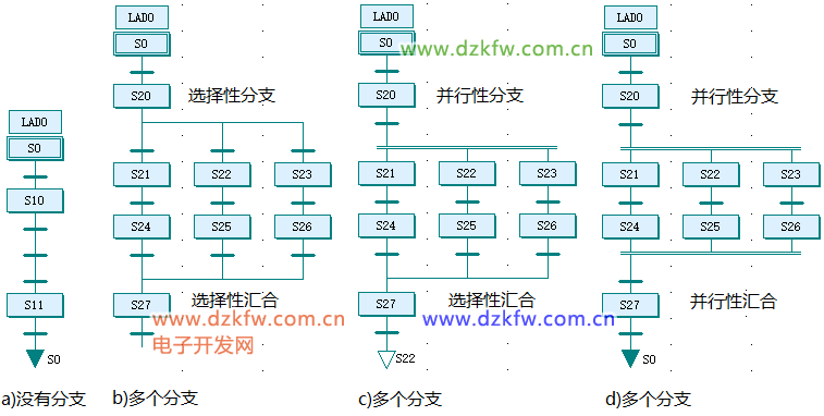 4)SFC可以實現(xiàn)復雜的分支流程,如下圖所示: