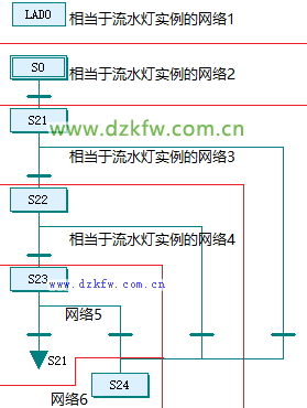 流水燈實例 的網(wǎng)絡1等效于SFC順序圖中的