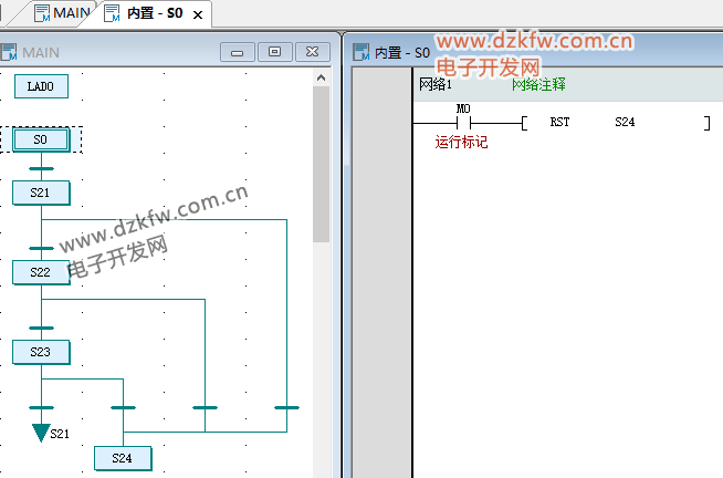 左邊最粗的豎線就是主母線,相當于主程序,右邊細一點的豎線就是副母線,相當于狀態(tài)S0下的執(zhí)行過程;
