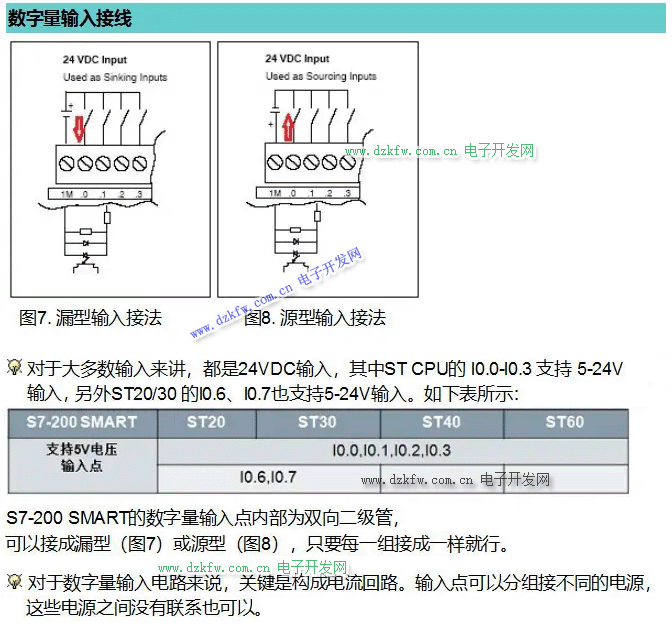 2.1 數字量輸入信號接線( 漏型和源型 )