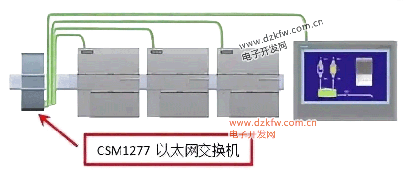 網絡連接則適用于兩個以上設備之間的通信,此時需要使用交換機進行連接。比如,可以使用西門子CSM1277 4端口交換機來連接多個CPU和HMI設備。