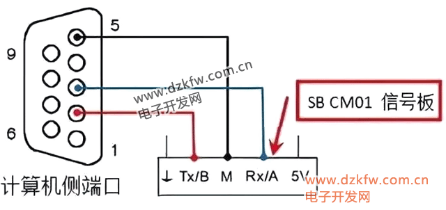 RS232網絡支持兩臺設備之間的點對點連接,其最大通信距離可達15米,通信速率最高為115.2 Kbit/s。這種連接方式適用于連接掃描儀、打印機、調制解調器等設備。SB CM01信號板經過配置,可作為RS232通信端口使用,典型的RS232接線方式如圖所示。