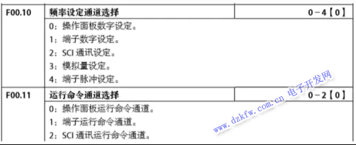 - 把 F00.11 設置為 1,這一操作可讓變頻器通過外部端子實現啟停控制,從而與 PLC 的控制邏輯相銜接。