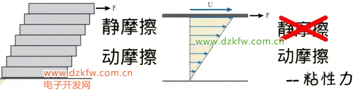 進一步說明前面提到三種種力的區(qū)別:附著力是一種靜態(tài)力,存在于固體或液體的接觸面;表面張力也是一種靜態(tài)力,存在于液體自由表面;粘性力是一種動態(tài)力,存在于發(fā)生持續(xù)剪切變形的流體內(nèi)部。