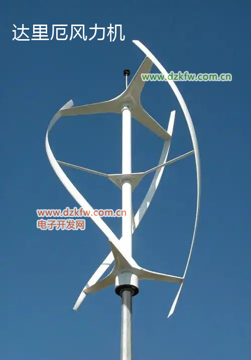 是法國G.J.M達里厄于19世紀30年代發明的。在20世紀70年代,加拿大國家科學研究院對此進行了大量的研究,現在是水平軸風力發電機的主要競爭者。達里厄式風輪是一種升力裝置,彎曲葉片的剖面是翼型,它的啟動力矩低,但尖速比可以很高,對于給定的風輪重量和成本,有較高的功率輸出。現在有多種達里厄式風力發電機,如Φ型,Δ型,Y型和H型等。這些風輪可以設計成單葉片,雙葉片,三葉片或者多葉片。