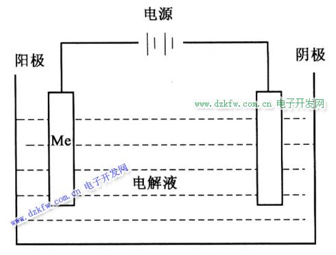 電鍍?cè)恚涸诤杏兘饘俚柠}類溶液中,以被鍍基體金屬為陰極,通過(guò)電解作用,使鍍液中欲鍍金屬的陽(yáng)離子在基體金屬表面沉積,形成鍍層。如圖13所示。