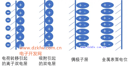 (5)金屬表面因為各種短程力作用而形成的表面電位差,如金屬表面偶極化的原子在界面金屬一側定向排列形成的雙電層。