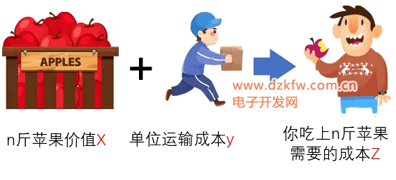 住在西藏的你很想吃蘋果了,于是你在網(wǎng)上查詢到n斤的蘋果價值為X元,而身處西藏的你不在包郵區(qū),并且運費按照y元/斤收取,其中y里面包含了空運費用y1和火車運輸y2兩部分。于是,你想吃到n斤蘋果需要付出的代價Z為: