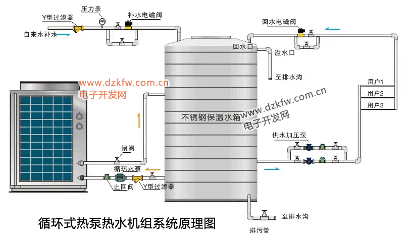 循環式熱泵熱水機組系統原理圖