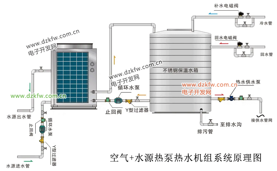 直熱循環式熱泵熱水機組系統原理圖